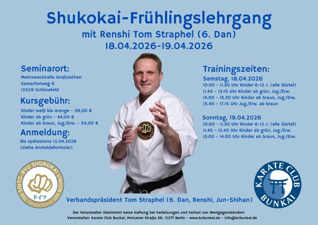 Shukokai-Frühlingslehrgang mit Renshi Tom Straphel (6. Dan) 18.04.2026-19.04.2026
